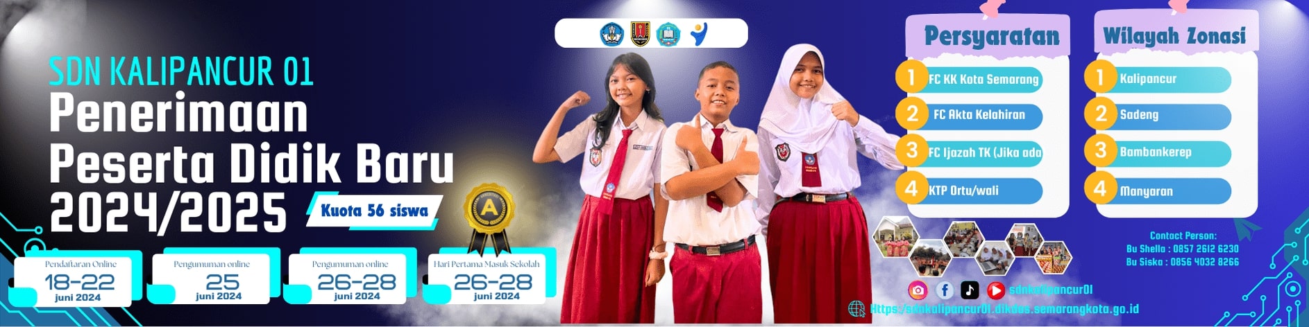 berikut ini kami sampaikan informasi mengenai Penerimaan Peserta Didik Baru (PPDB) SDN KALIPANCUR 01 Tahun Ajaran 2023/2024